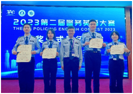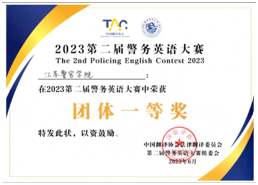 2023第二届警务英语大赛近日在浙江警察学院成功举办。我院有四名选手参赛,并取得了团体一等奖和三个个人奖项的好成绩。本次大赛有来自全国23所公安政法院校和浙江公安出入境、出入境边防检查总站共25支参赛队,约160名代表参赛。