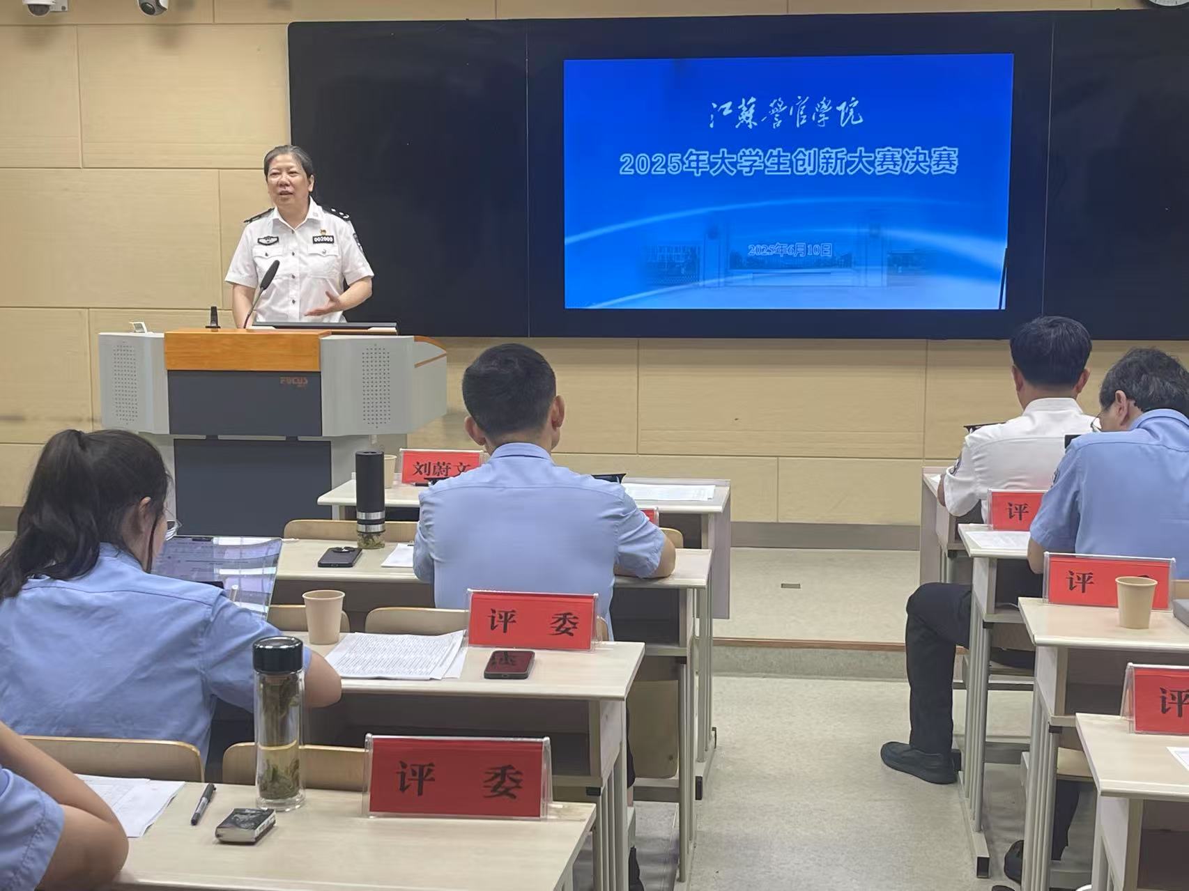 刘蔚文同志在大赛开幕式上指出,中国国际大学生创新大赛是教育部等部门联合组织开展的高质量赛事,旨在深化高等教育综合改革,培养学生创新精神,提升实践创新能力。本次决赛不仅是创新成果的展示平台,还是省赛征程的起跑线,更是成长成才的实践课堂。她勉励警院青年学子要立大志、求真知、重协作,进一步夯实创新根基,充分发挥团队优势,实现1+1>2的聚合效应。