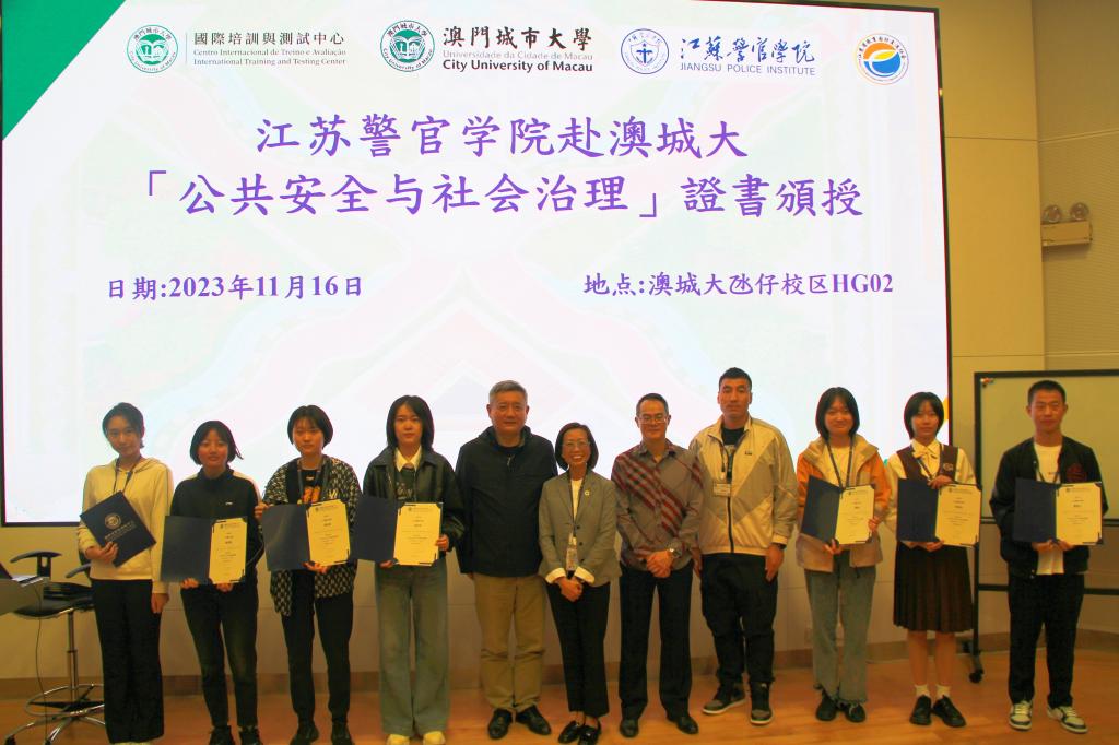 课程结束后,澳门城市大学国际培训与测试中心何珍主任及任课教师为同学们颁发结业证书。