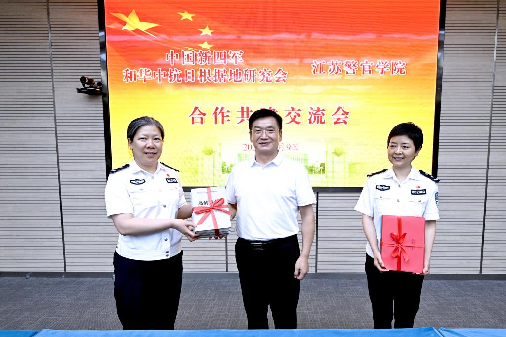 7月9日,学院与中国新四军和华中抗日根据地研究会开展共建交流活动并签订合作协议。中国新四军和华中抗日根据地研究会会长、江苏省军区原司令员于中海率研究会驻会领导和专家一行到学院座谈交流。研究会咨询组领导、山东省原副省长、省公安厅原厅长徐珠宝代表研究会向学院赠送书籍。新华日报社副总编辑、中国新四军和华中抗日根据地研究会副会长钱丽萍参加活动并向学院赠送珍贵的载有学院重要校史新闻的《新华日报》。省公安厅党委委员、学院党委书记夏存喜,学院党委副书记、院长黄进参加活动。学院党委副书记陈卫主持交流会。