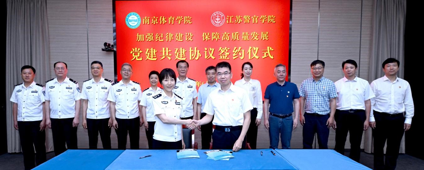 6月14日上午,江苏警官学院、南京体育学院开展党纪学习教育工作交流活动并签订党建共建合作协议。南京体育学院党委书记刘红明率党委班子成员一行到江苏警官学院进行座谈交流,省公安厅党委委员、学院党委书记夏存喜,学院党委副书记、院长黄进参加活动。学院党委副书记陈卫主持交流会。