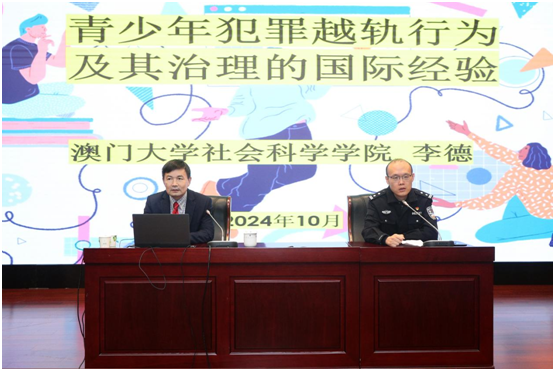 10月20至10月24日,学院侦查系承办了“国际视野下的犯罪治理研究”系列讲座活动,邀请澳门大学社会科学学院李德教授到校讲学交流。10月20日下午,学院党委委员、副院长刘蔚文会见了李德教授,侦查系、外事办负责人陪同会见。
