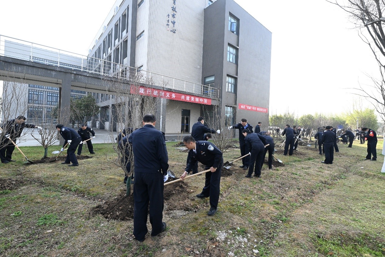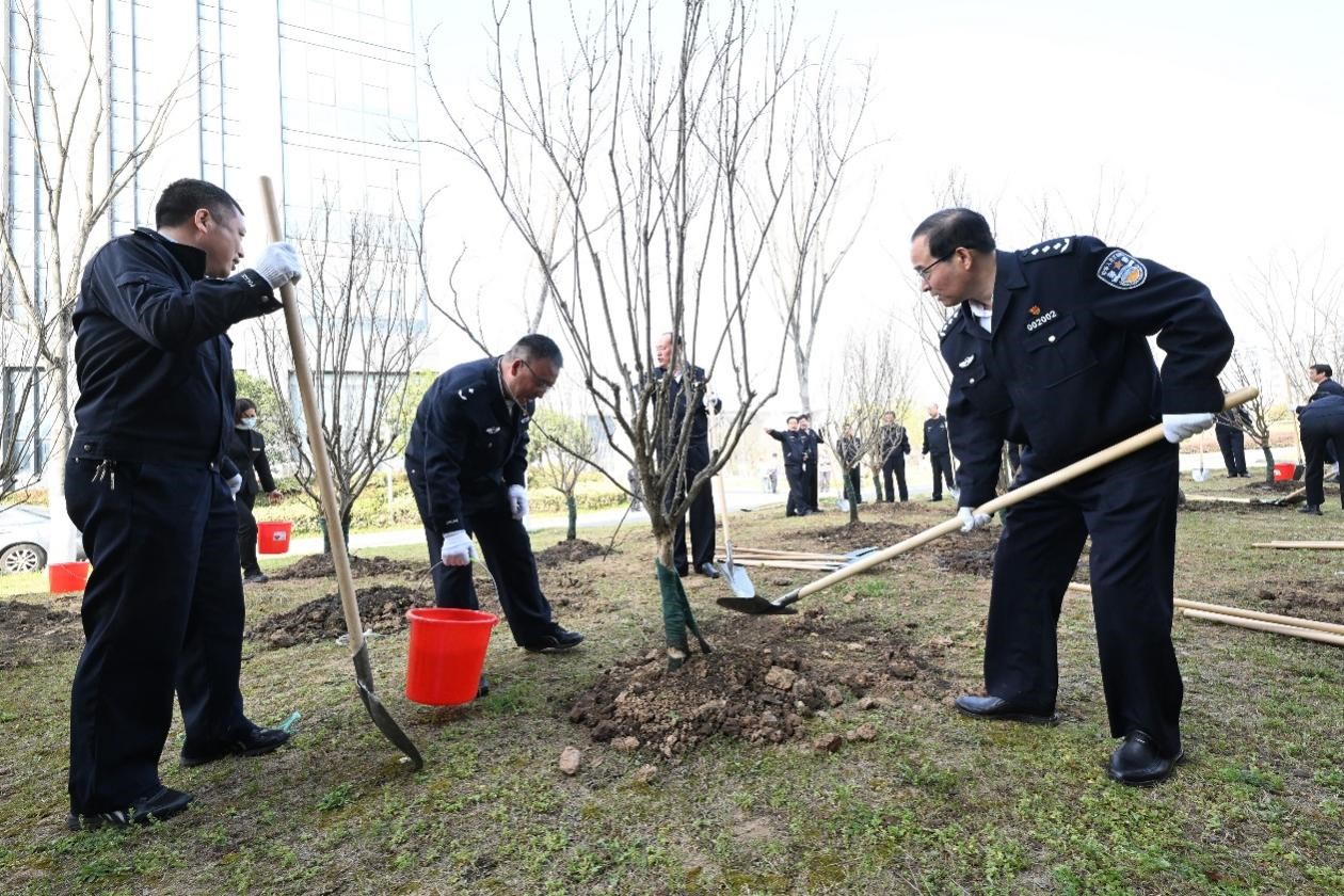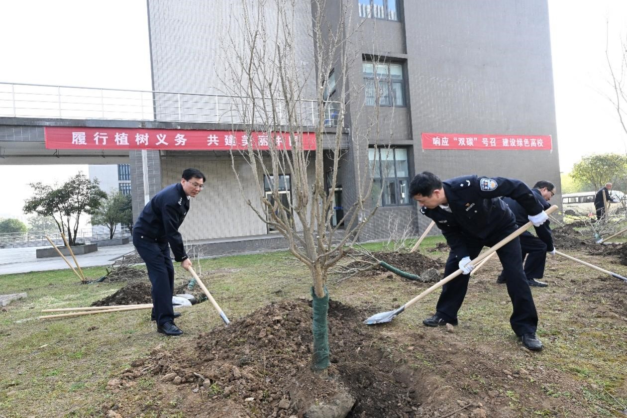 春风拂绿,万象更新。在2023年植树节来临之际,310日上午,学院开展以响应双碳号召 建设绿色高校为主题的植树活动。省公安厅党委委员、学院党委书记夏存喜,学院党委副书记、院长张兰青与在校院领导、各部门负责人一道在现教中心西侧参加植树活动。