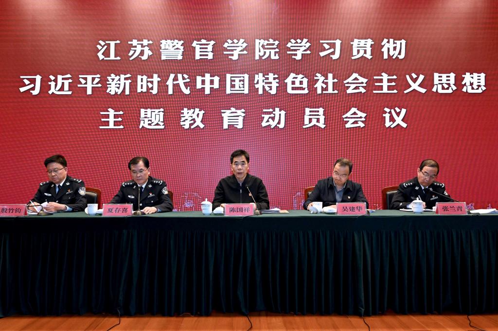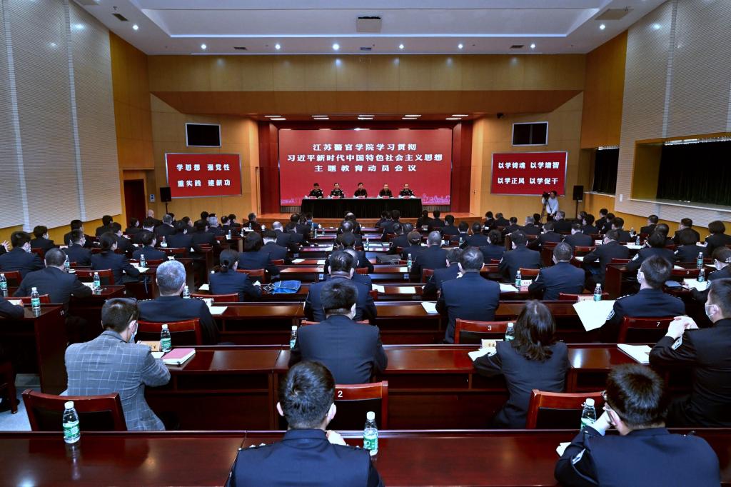 夏存喜指出,要深入学习贯彻习近平总书记在学习贯彻习近平新时代中国特色社会主义思想主题教育工作会议上的重要讲话精神,全面贯彻落实中央、省委和省公安厅党委部署要求,深刻认识开展主题教育是坚定拥护“两个确立”、坚决做到“两个维护”的必然要求,是谋划江苏公安教育现代化新路径、更好履行新时代公安教育新使命的必然要求,是全面从严管党治警、锻造过硬师生队伍的必然要求,提高政治站位、强化政治担当、扛起政治责任,扎实开展主题教育,真正做到铸牢忠诚警魂、坚定政治信仰、锤炼坚强党性、强化实干担当,努力把学院建设成为培育忠诚卫士的摇篮、研究现代警务的智库、孵化警务技术的平台、锻造公安铁军的基地,切实以公安教育担当,更好服务江苏公安工作现代化建设。