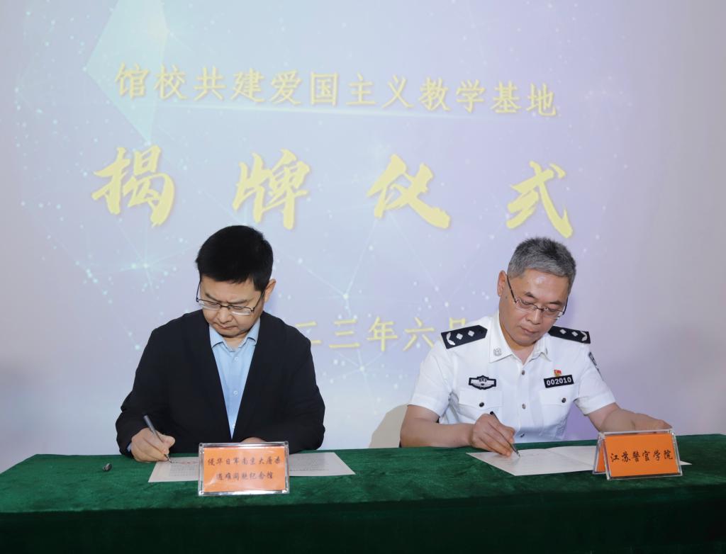 江苏省公安厅党委委员、学院党委书记夏存喜,学院党委委员、副院长王奎宏,学院党委委员、政治部主任刘艳芳,南京市委宣传部副部长、侵华日军南京大屠杀遇难同胞纪念馆馆长周峰,副馆长时鹏程出席共建签约揭牌仪式。