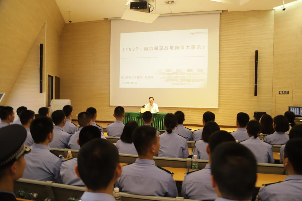 共建仪式结束后,依托新共建的“爱国主义教学基地”平台,我院师生一同参观了“南京大屠杀史实展”,聆听了南京师范大学经盛鸿教授以史为鉴为学生们作的思政专题授课,同学们深受触动,表示通过爱国主义教育实践课程的学习,更加深刻感受到国家安全的重要意义,深切体会到和平生活来之不易,作为警校学子,要不忘初心、牢记使命,努力做党和人民的忠诚卫士。
