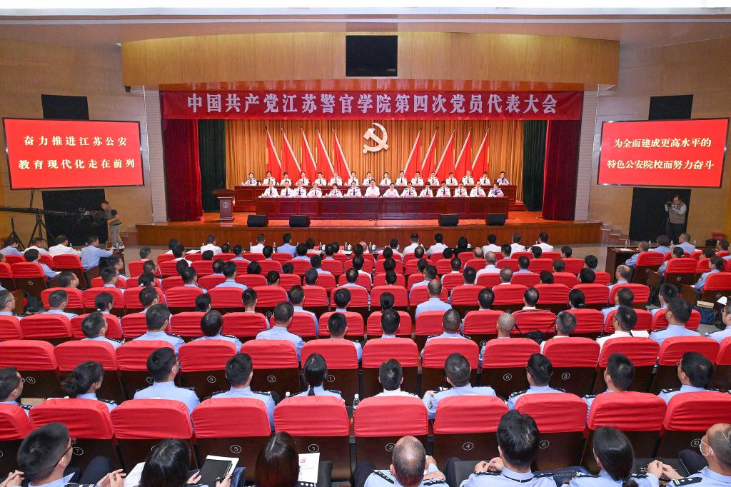9月26日上午,在庄严的国歌声中,中国共产党江苏警官学院第四次党员代表大会隆重开幕。
