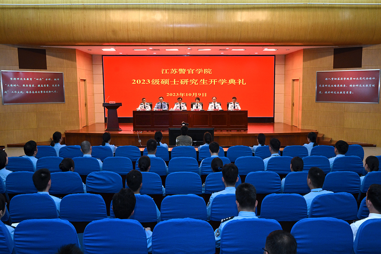 10月9日,学院举行2023级警务硕士研究生开学典礼。省公安厅党委委员、学院党委书记夏存喜出席典礼并讲话。学院党委副书记、院长黄进主持开学典礼。
