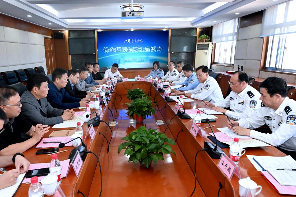 夏存喜介绍了学院办学历史、事业发展和人才培养情况,认真听取用人单位对学院人才培养、就业工作等方面的意见建议,感谢用人单位和校友长期以来给予学院工作特别是学生就业创业工作的关心支持。他指出,学院的发展离不开用人单位、校友和社会各界的热忱关心和鼎力支持,组织“访企拓岗促就业”活动,旨在与各单位进一步加强交流合作、深化共建共享,完善合作机制、夯实合作基础,常态化分享就业信息,为毕业生创造更多的实习条件和就业机会。他要求,全院上下要深入贯彻落实习近平总书记关于公安工作、教育工作、江苏工作的重要讲话指示和给中国人民公安大学在读英烈子女重要回信精神,认真贯彻中央、省部和省教育厅、省公安厅部署要求,全面落实学院第四次党代会精神,更好把握行业发展趋势和人才实际需求,持续深化教育教学改革,不断提升人才培养质量,加快建设更高水平的特色公安院校。
