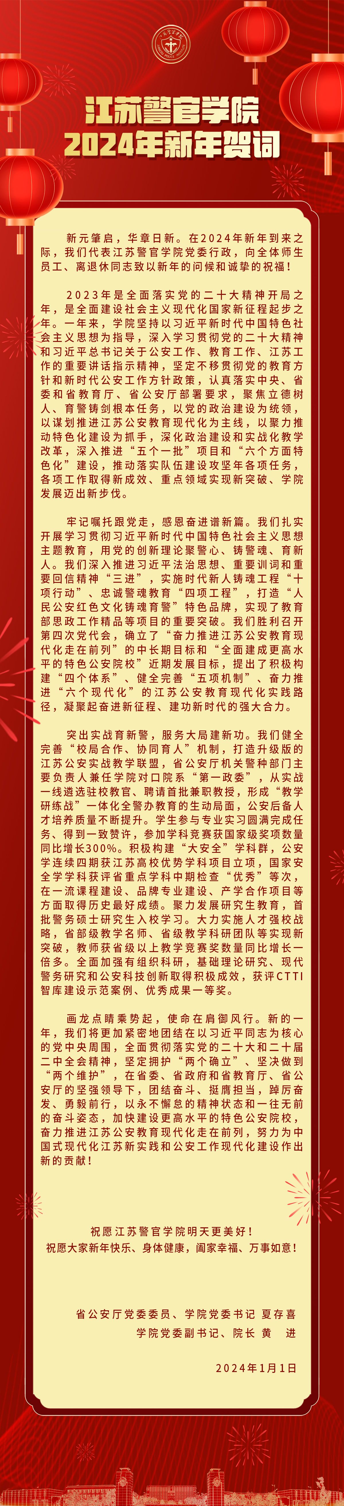 江苏警官学院2024年新年贺词
