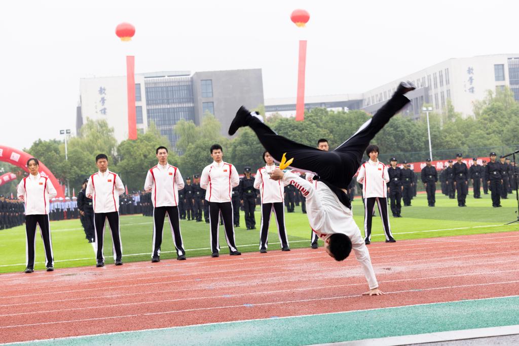 请党放心,强国有我。新生代表诗朗诵《预备警官向祖国报到》、全体新生合唱《歌唱祖国》将典礼气氛推向高潮。