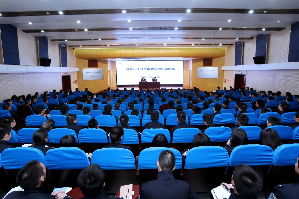 张新科在讲座中着重阐释了习近平总书记关于社会科学“两个不可取代”的重要论述,并紧密结合科研实践和公安实战,从打造理论社科、应用社科、大众社科、开放社科和数字社科等五个方面阐述了哲学社会科学的丰富内涵,分析了其认识世界、改造世界,推动社会发展和进步的重要价值,揭示了哲学社会科学研究方法在公安研究领域的融入方式和发展路径。