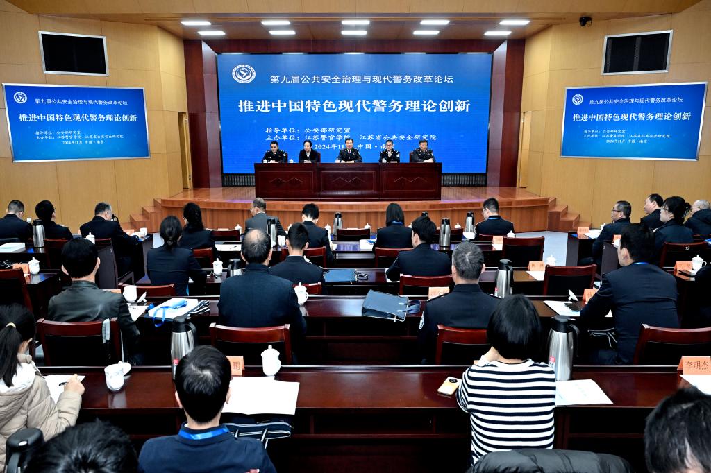 11月30日,江苏警官学院(江苏省公共安全研究院)举办第九届公共安全治理与现代警务改革论坛,公安部研究室、公安部新闻传媒中心、中国警察协会、江苏省公安厅等有关部门和省内外公安机关、公安院校的领导专家等100多人与会。会议深入学习贯彻习近平总书记关于新时代公安工作的重要论述和党的二十届三中全会精神、全国公安工作会议及全国公安厅局长座谈会部署,围绕“推进中国特色现代警务理论创新”主题进行深入研讨,为推进公安工作现代化、以高水平安全保障高质量发展贡献智慧和力量。