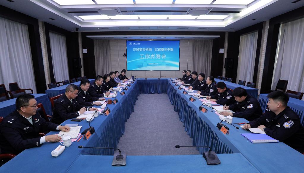 4月9日,云南警官学院党委书记胡水旺一行8人来我校调研。学院党委副书记、院长黄进与胡水旺书记一行座谈交流。云南警官学院党委委员、政治部主任李静,我院党委委员、副院长张敏,党委委员、政治部主任朱斌权,江苏省公安厅组宣处副处长、一级调研员陶莉参加座谈交流。