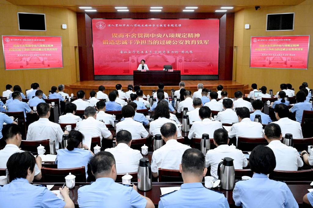 周凤琴强调,学院党员干部教师要切实增强带头深入贯彻中央八项规定精神的责任感和使命感,强基固本正党风,坚持不懈用习近平新时代中国特色社会主义思想凝心铸魂,坚定拥护“两个确立”、坚决做到“两个维护”,切实打牢高举旗帜、听党指挥、忠诚使命的思想根基。从严要求砺警风,按照绝对忠诚、绝对纯洁、绝对可靠的标准,服从警务化管理,严守铁规禁令,不断强化警察意识、塑造良好形象。以身作则优教风,对标对表习近平总书记提出的“四有好老师”重要要求,大力弘扬教育家精神,自觉加强师德师风建设,做到讲情怀、有追求,知敬畏、守底线,强素质、提能力,身体力行做学生为学、为事、为人的大先生。要持之以恒锻作风,保持抓的韧劲,增强干的拼劲,推动干部教师崇尚极简生活、树立极致作风、践行极严要求,共同推动学院事业发展开创新局面。