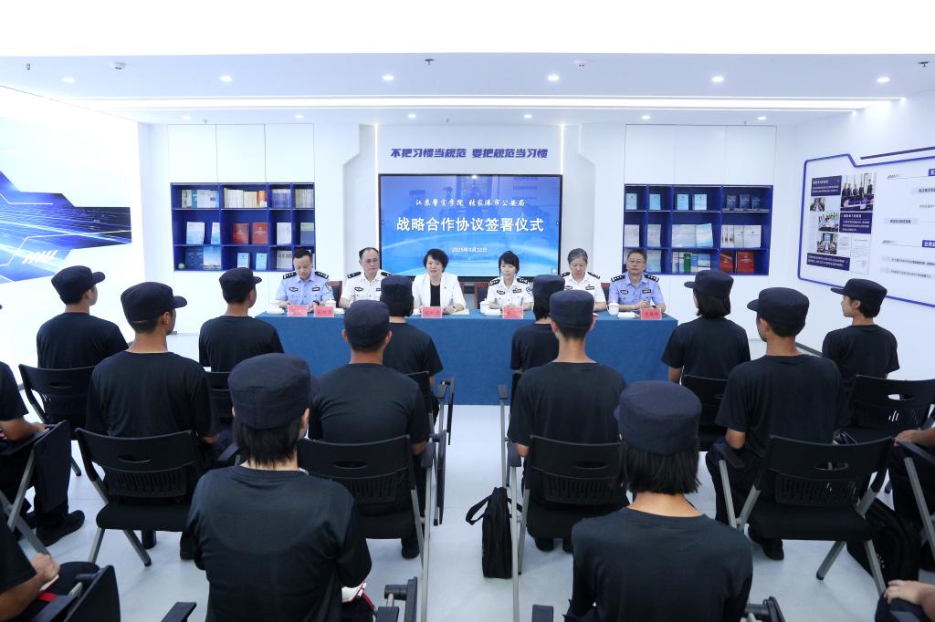 9月10日下午,学院与张家港市公安局签署校局合作协议,共同建设法治教育创新实验室。省公安厅党委委员、学院党委书记周凤琴,学院党委副书记、院长黄进,张家港市副市长、公安局局长赵冰出席仪式并讲话。学院党委委员、副院长冯红新代表学院签署协议。学院党委委员、副院长刘蔚文主持活动。