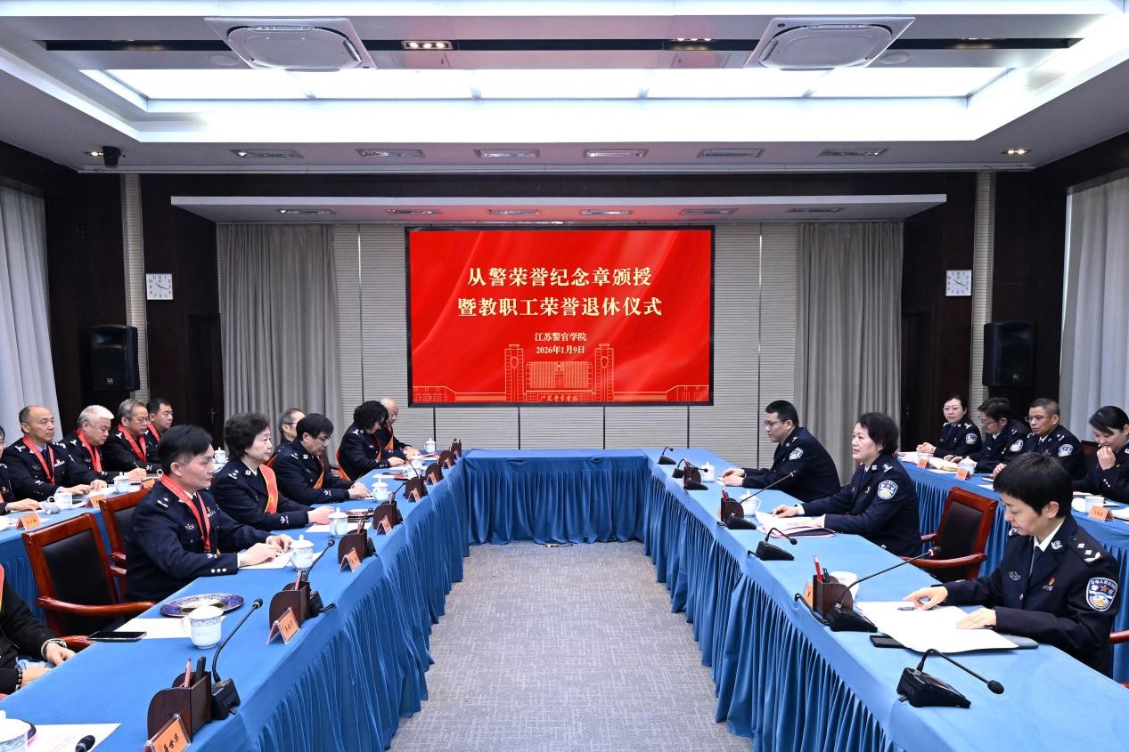 周凤琴强调,2026年是国家“十五五”规划开局之年,也是江苏公安高等教育高质量发展乘势而上、提档升级的关键一年,希望光荣退休的同志离岗不离党、退休不退责,一如既往关心学院发展,多提宝贵意见、多献务实之策,让江苏公安高等教育薪火相传。希望获颁纪念章的同志珍惜荣誉、再立新功,主动扛起学院发展的“中流砥柱”责任。希望学院全体师生见贤思齐、奋勇争先,以前辈为学习榜样,发扬“越是艰险越向前”的创新锐气,践行“致广大而尽精微”的实干担当,奋力推动江苏公安高等教育高质量发展走在前、作示范。