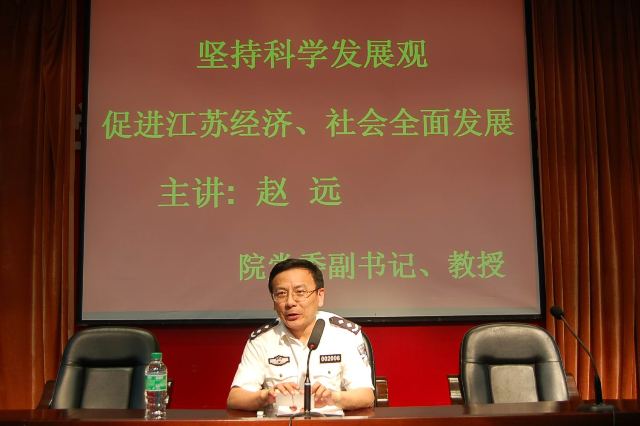 赵远副书记的讲座起点高、眼界宽,阐述理论深入浅出,联系实际点面结合,融知识性和趣味性于一体,具有很强的启发性和感染力,对新生较好地了解当前国家、尤其是江苏经济、社会运行总体态势,牢固树立科学发展观,切实增强自身的使命感和责任感,以积极的姿态顺利完成由一名普通高中生向一名警院大学生的角色转变,努力规划好大学四年学习生活具有很强的指导意义。
