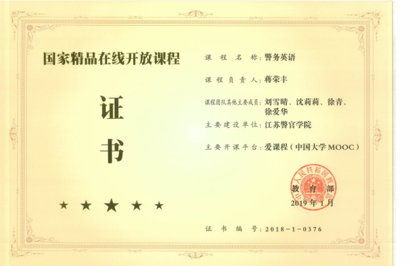 日前,教育部下发了《关于公布2018年国家精品在线开放课程认定结果的通知》(教高函〔2019〕1号),我院《警务英语》被认定为国家精品在线开放课程。该课程是我院通过教育系统认证的首门国家精品在线开放课程,是“五个一批”培育建设项目取得的重要成果,在学院课程建设中具有重要意义。