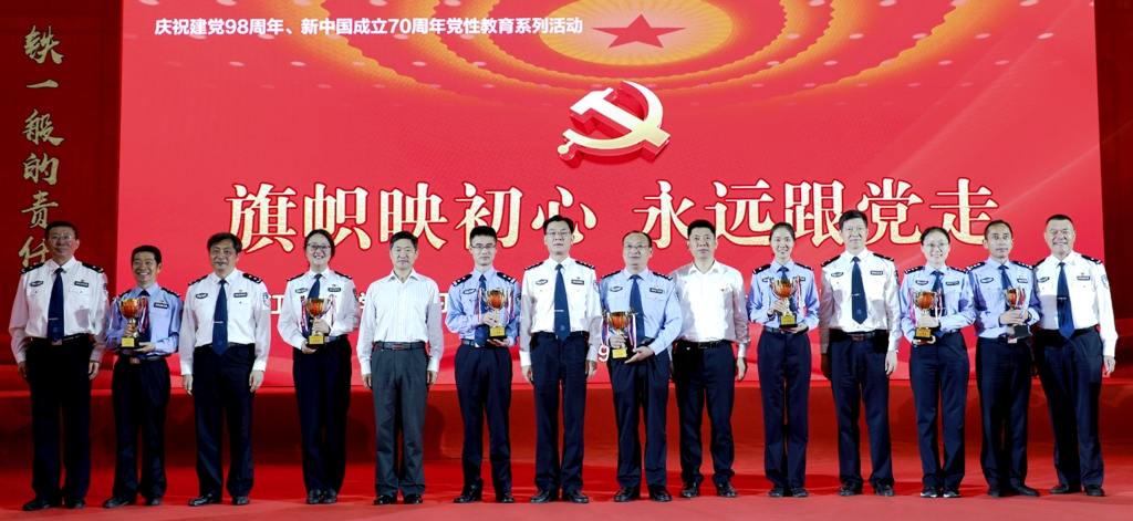 6月18—19日,学院隆重举行“旗帜映初心、永远跟党走”学习贯彻习近平新时代中国特色社会主义思想知识竞赛。省委省级机关工委、省委教育工委、省公安厅等上级机关有关部门领导莅临现场指导。省公安厅党委委员、学院党委书记夏存喜,以及近千名师生代表观看了比赛。