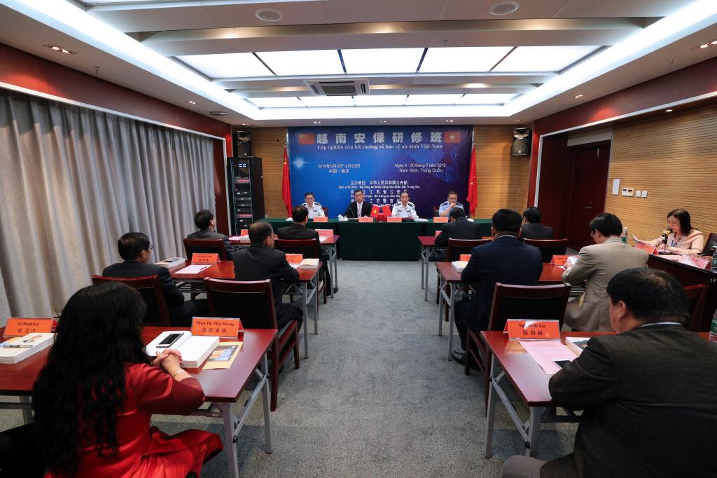 由公安部主办、省公安厅协办、学院承办的越南安保研修班顺利完成既定任务,6月19日下午举行结业典礼。学院党委副书记、院长张兰青参加结业典礼并讲话,省公安厅国际合作局国合支队支队长谢寅,研修班团长、越南公安部经济安全局副局长黎俊出席结业典礼。副院长薛宏伟主持典礼,研修班全体学员,学院外事办、干训部等部门有关人员参加了结业典礼。