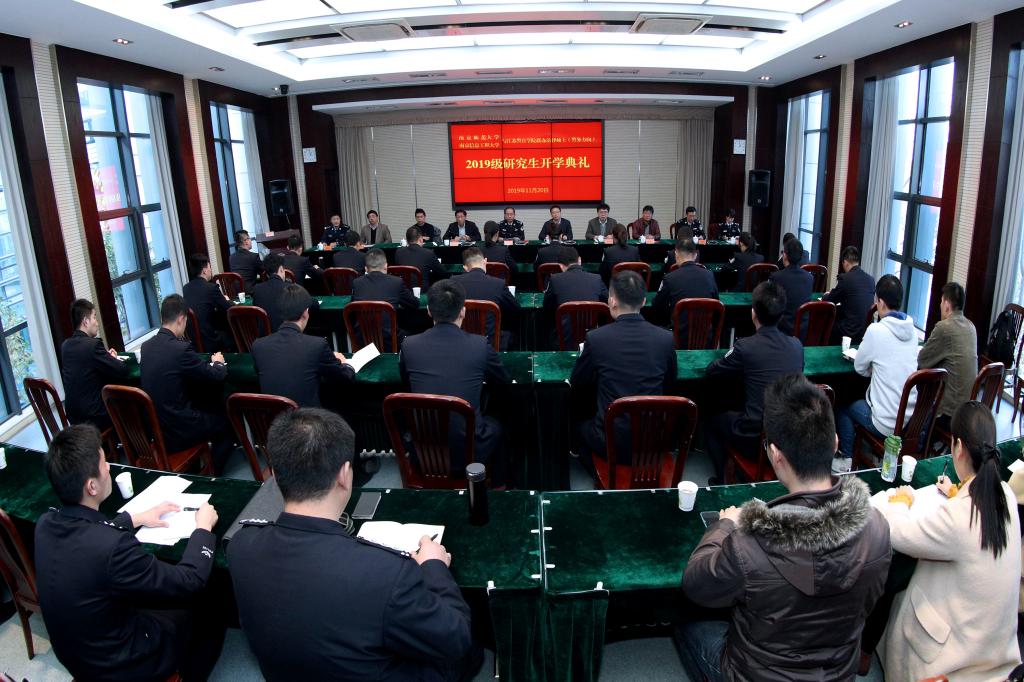 11月20日下午,江苏警官学院与南京师范大学、南京信息工程大学联办的2019级法律硕士(警务方向)研究生开学典礼在我院浦口校区举行。学院党委副书记、院长张兰青,南京师范大学党委常委、宣传部部长张连红,南京信息工程大学党委常委、副校长张永宏,省公安厅政治部副主任、实训办主任顾博礼出席开学典礼。开学典礼由学院党委委员、副院长黄进主持。