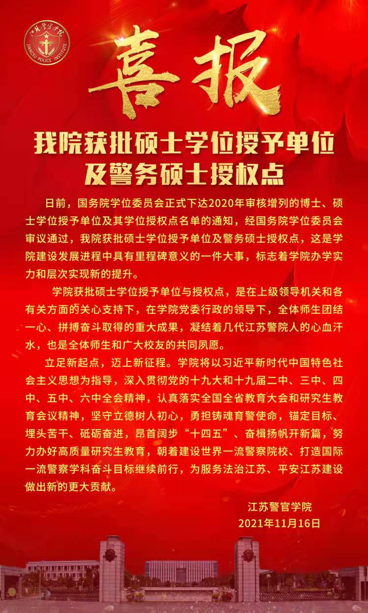 喜报:我院获批硕士学位授予单位及警务硕士授权点