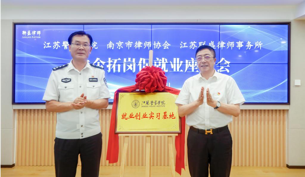 夏存喜详细了解南京市律师行业和联盛律所基本情况,与用人单位负责人、校友代表座谈交流,听取对学院学科专业设置、人才培养工作、就业指导服务等方面的意见建议,并为设立在江苏联盛律师事务所的“江苏警官学院就业创业实习基地”授牌。双方就发挥各自优势,融合律师行业资源和学院学科资源,深化合作共建进行了交流。