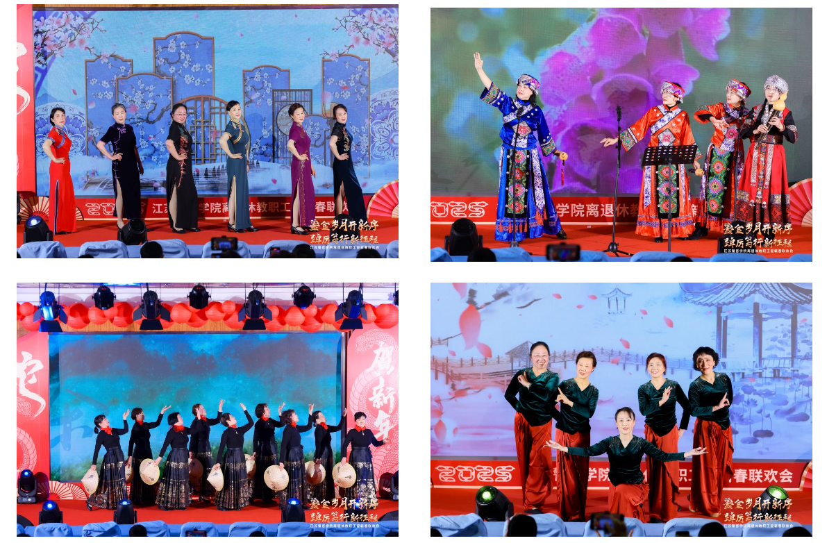 旗袍秀《漫步人生路》、斗笠走秀《泼茶香》、葫芦丝《花满楼》、舞蹈《黄梅悠悠》等节目,将传统服饰与现代元素完美结合,展现了离退休教职工们的优雅气质和时尚韵味。