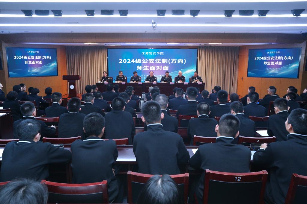 为贯彻落实《中共中央关于进一步全面深化改革推进中国式现代化的决定》提出的“完善以实践为导向的法学院校教育培养机制”,培养适应更高水平法治公安建设要求的公安法制应用型、复合型人才,10月31日晚,法律系在浦口校区举办2024级公安法制(方向)师生面对面活动。学院党委委员、副院长冯红新,省公安厅法制总队政委李建兵、南京市公安局雨花台分局副局长李志斌、学生处政委王海群、法律系政委章丽龙参加活动。