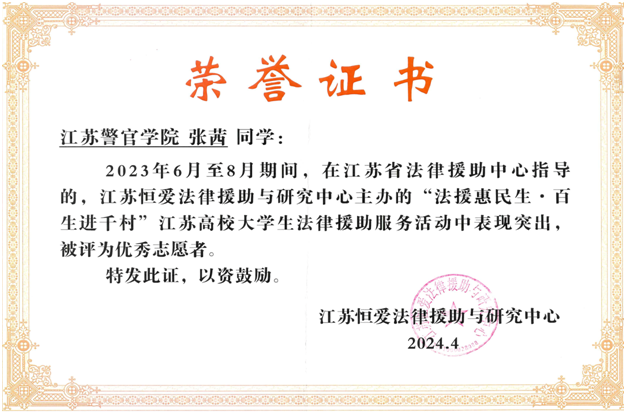 江苏高校“法援惠民生、百生进千村”志愿服务活动,是由江苏恒爱法律援助与研究中心组织实施的暑期法援乡村行活动,旨在以高校大学生暑期社会实践和假期回乡为契机,在全省范围内开展乡村法律援助以及乡村法律服务需求调研。本次活动有南京大学、东南大学等江苏18所高校法学院(系)的189名本科生、研究生参与。本次活动共评出优秀指导教师6人,优秀志愿者28人,优秀调研报告4篇。