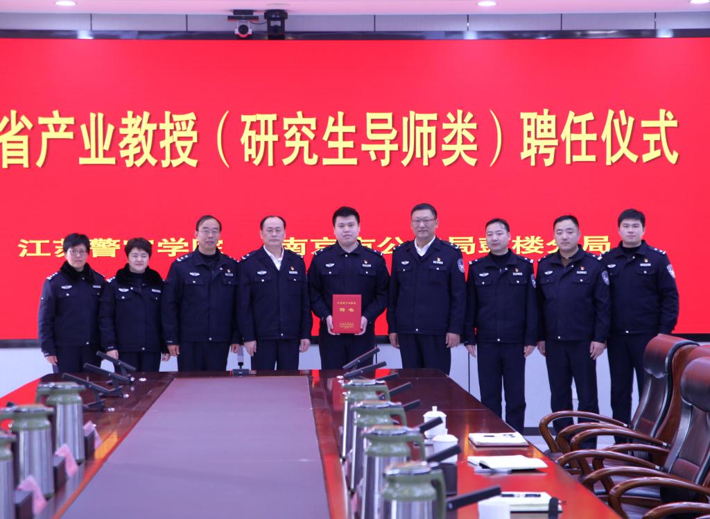 为进一步深化落实产教融合机制,全面推进校局合作一体化建设,3月7日上午,学院2023年新增江苏省产业教授(研究生导师类)聘任仪式在南京市公安局鼓楼分局举行,学院党委委员、副院长冯红新为南京市公安局鼓楼分局民警毕志杰颁发产业教授(研究生导师类)聘书。鼓楼分局党委副书记、政委李少勋和鼓楼分局政治处、刑警大队等有关部门负责同志参加了聘任仪式。