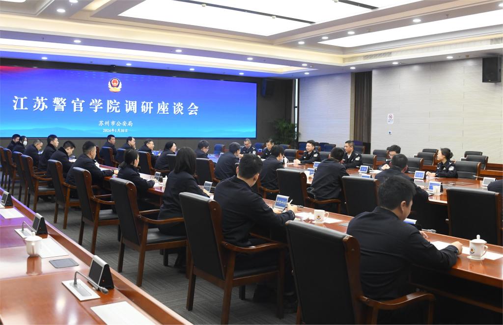 在苏州市公安局,张敏一行看望了在相城分局中心商贸城派出所实习的学生,参观了市局刑警支队全国公安机关一级DNA实验室、“机+智”枪弹实验室,并与市局有关领导、警种部门负责人进行座谈,听取有关情况介绍,了解学生实习情况,双方还就推进高层次人才共育共享、组织学警参与警务研究等进行深入交流。