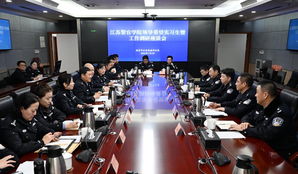 1月4日下午,学院党委委员、副院长张敏带领学生处负责人,赴南京市公安局建邺分局看望慰问实习生并就深化校局合作、创新实习教育等进行调研。南京市公安局党委委员、政治部主任仇文庆,市局人事处、政工综合处、建邺分局有关负责同志和学院实习生代表参加调研座谈。