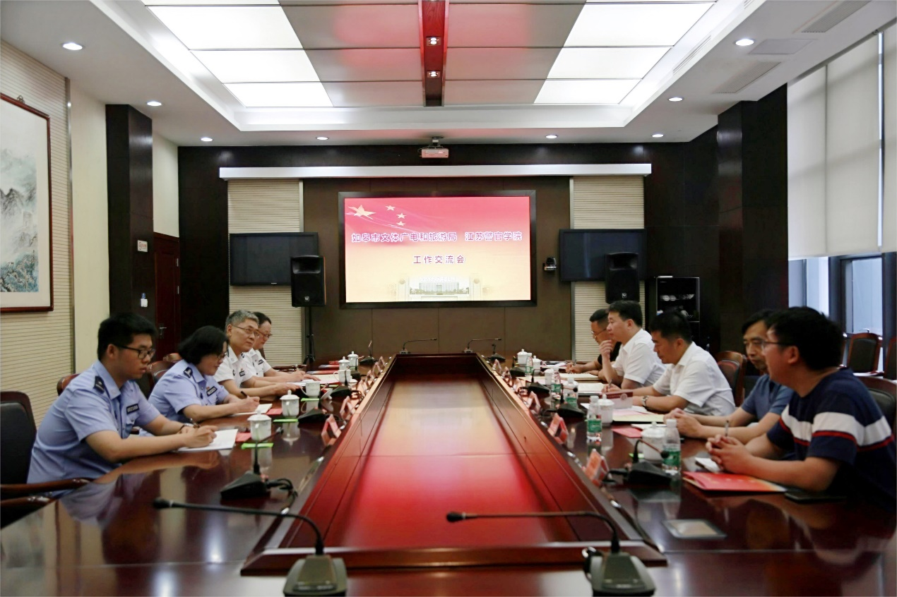 7月13日下午,如皋市常委、宣传部部长张炜龙,如皋市文体广电和旅游局党组书记谢裕斌一行来我院博物馆考察,就指纹馆与李昌钰刑侦技术博物馆合作事宜进行交流。学院党委委员、副院长王奎宏参加座谈交流,学院博物馆负责人陪同考察并与对方就合作建设进行了交流。
