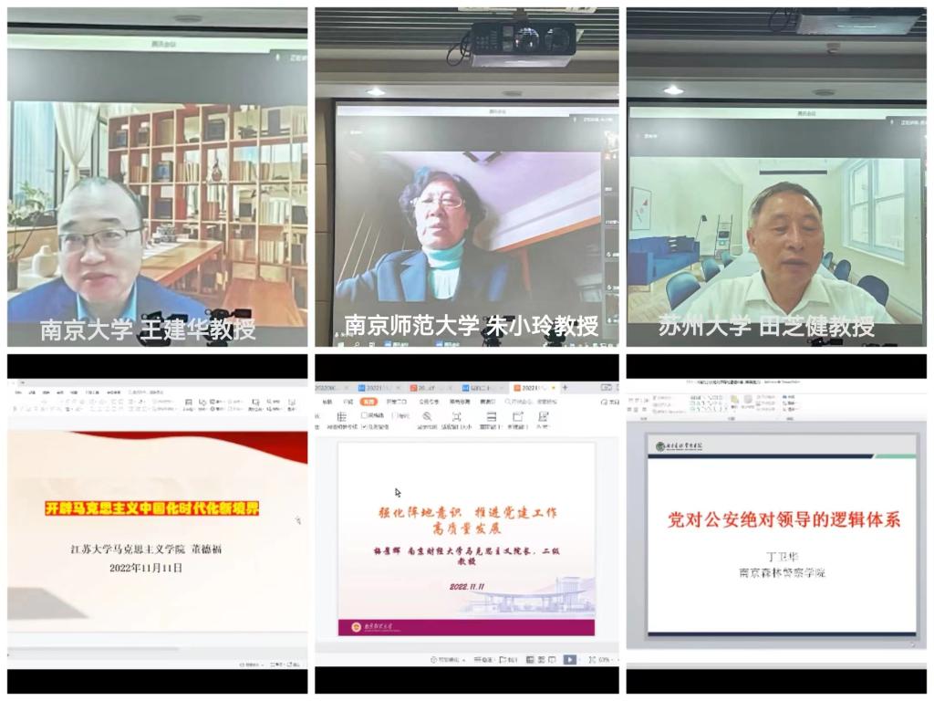 为深入学习贯彻党的二十大精神,坚持不懈用党的创新理论引领新时代公安党建高质量发展,2022年11月11日,由江苏警官学院主办、马克思主义学院承办的“公安党建高质量发展”学术研讨会在南京召开。来自南京大学、南京师范大学、苏州大学、江苏大学、南京财经大学、中国人民警察大学、南京森林警察学院、上海公安学院等近20所院校专家学者,以及南京市公安局、苏州市公安局、常熟市公安局、江苏出入境边防检查总站轮训大队等公安党建专家共计60余人通过线上线下的方式参加会议。