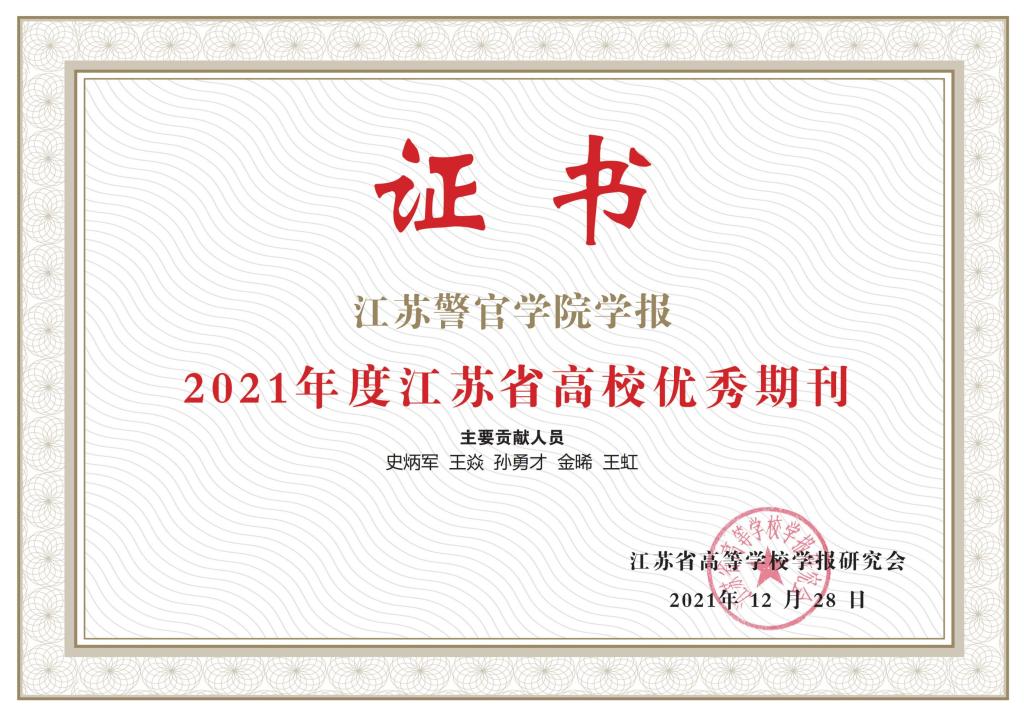 近日,江苏省高等学校学报研究会举办了高校期刊评比活动,这是近十年来首次举办的此类活动。通过核对参评期刊在国内四大核心数据库( CSSCI2021-2022、CSCD2021-2022、北大核心2020版和中国科技核心2021版)的收录情况,并采用中国知网2020版和2021版数据进行定量排序,最后理事长办公会议依据一系列基于客观数据的评选程序,产生出最终结果。我院学报和江苏师范大学学报(哲学社会科学版)、南京航空航天大学学报(社会科学版)、扬州大学学报(人文社会科学版)、南京财经大学学报等刊物处于同一方阵,同被评为江苏省优秀期刊。本次评选是对我院学报办刊质量的充分肯定,体现了我院学报在全省高等学校学报中的良好声誉和影响力。
