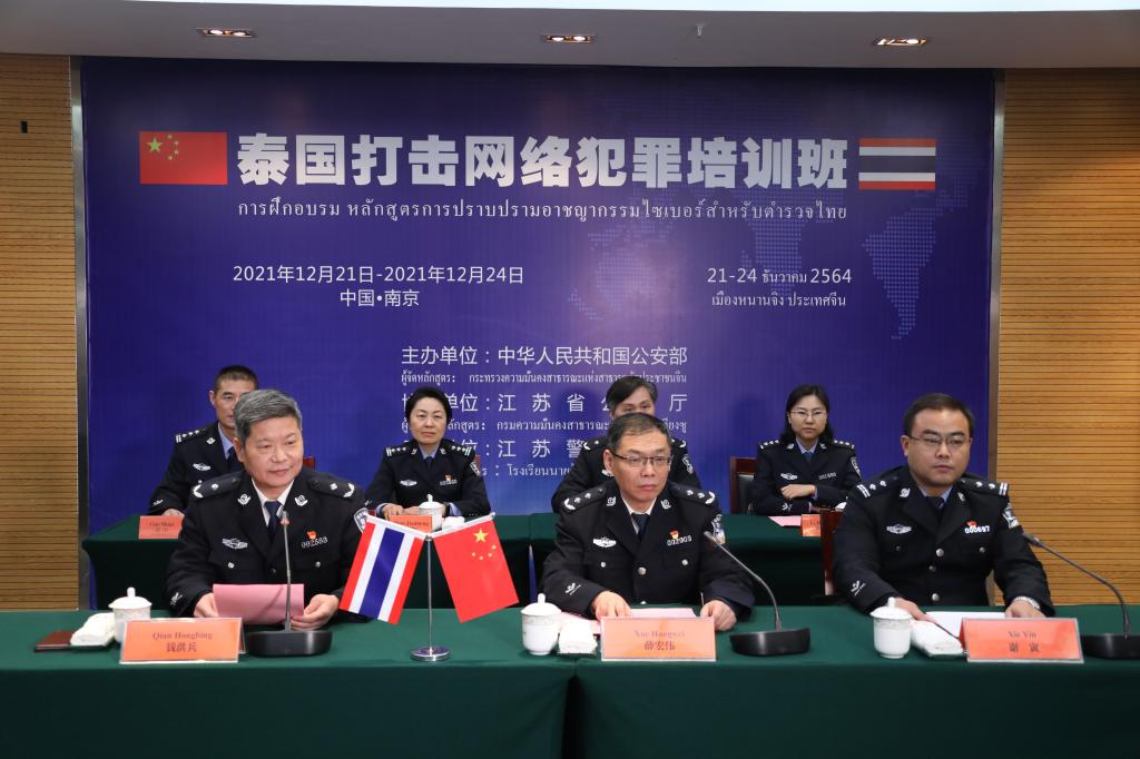根据公安部国际合作局安排,12月21日至24日,2021泰国打击网络犯罪培训班以线上方式成功举办。本期培训班由公安部主办、江苏省公安厅协办、江苏警官学院承办,来自泰国网络安全部门、外事部门的20名警官参加了培训交流。江苏省公安厅国际合作局副局长谢寅出席培训班结业典礼,江苏警官学院党委委员、副院长薛宏伟和泰国警察总署外事局局长、国际刑警组织泰国中心局局长凯马林·哈西里少将出席开班仪式和结业典礼。