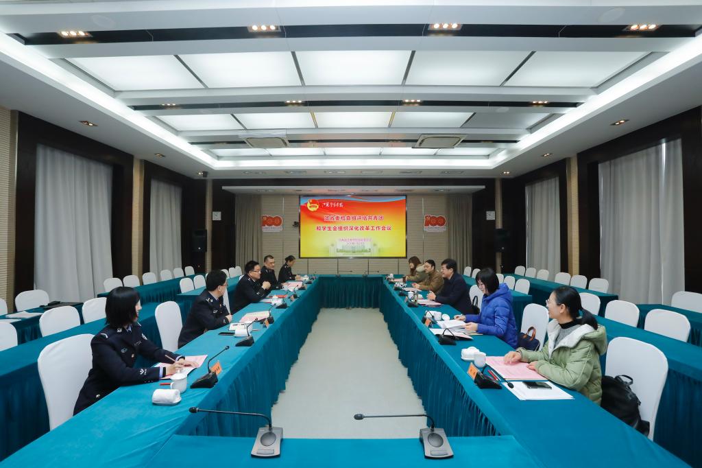 叶柏森代表检查组对我院共青团和学生会组织深化改革工作给予充分肯定,他指出学院党委高度重视共青团和学生会改革工作,学院铸魂育警特色明显,共青团和学生会改革工作扎实有效,智慧团建数据录入按时完成,第二课堂成绩单工作亮点突出,志愿服务工作特色鲜明、成效显著。