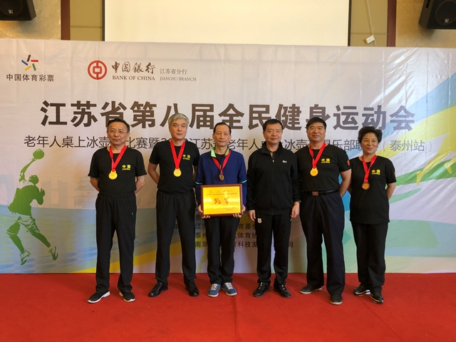 由江苏省全民健身运动会组委会主办、江苏省社会体育管理中心等单位承办的江苏省第八届全民健身运动会老年人桌上冰壶球比赛暨2020年江苏省老年人桌上冰壶球俱乐部联赛10月12日至14日在泰州举行,来自全省13个市16支代表队及我院2支代表队参加比赛。经过激烈角逐,我院老年桌上冰壶球一队勇夺冠军,二队进入前八名,陈小蓓同志荣获女子个人赛冠军。