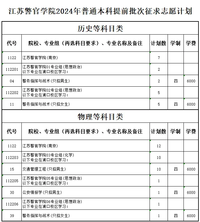 江苏警官学院2024年普通类本科提前批次填报征求志愿通告