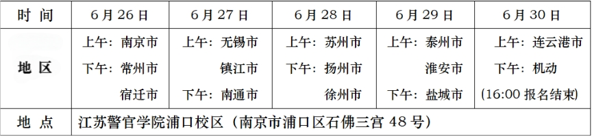 面试、体检、体能测评对象为意向报考2025年公安部所属院校(中国人民公安大学、中国人民警察大学、中国刑事警察学院、郑州警察学院、南京警察学院)和云南警官学院、江苏警官学院公安专业的考生。考生须在江苏省参加高考,高考成绩达到资格分数线(6月25日在省教育考试院网站公布),首选和再选科目符合公安院校(专业)招生要求。