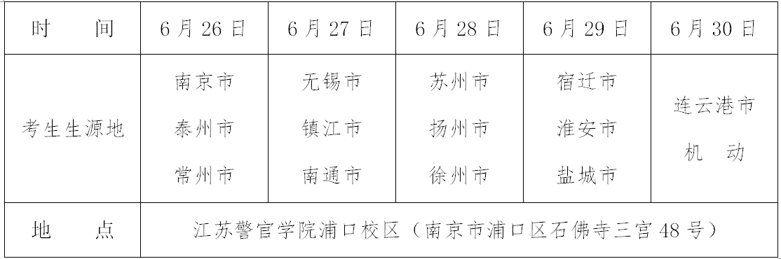 1.面试、体测、体检(以下简称面试)对象为2019年志愿报考江苏警官学院公安专业及报考公安部属院校(中国人民公安大学、中国人民警察大学、中国刑事警察学院、铁道警察学院、南京森林警察学院)的考生。报考江苏警官学院的考生须取得江苏省常住户口并在江苏省参加高考,高考成绩达到省教育考试院划定的面试资格分数线,选测科目等级符合学院招生要求。
