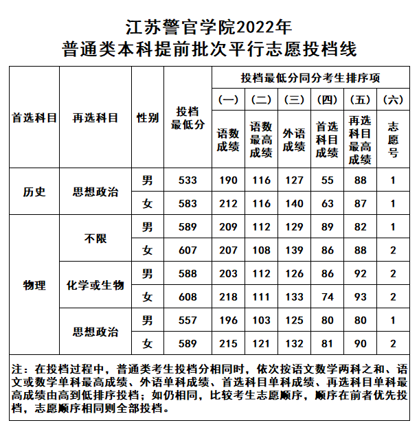 江苏警官学院2022年普通类本科提前批次平行志愿投档线