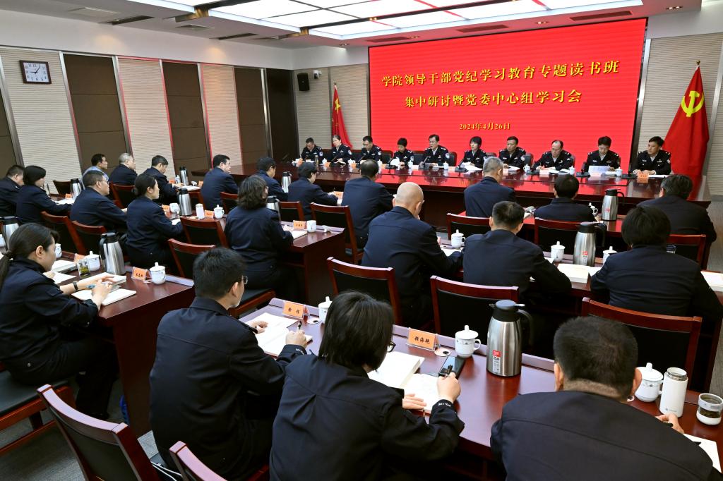 学院领导干部党纪学习教育专题读书班第一阶段为期2天,以集中学习、交流研讨等方式开展。4月26日上午,在读书班集中研讨暨党委理论学习中心组学习会上,院党委委员围绕《条例》总则部分进行学习交流。