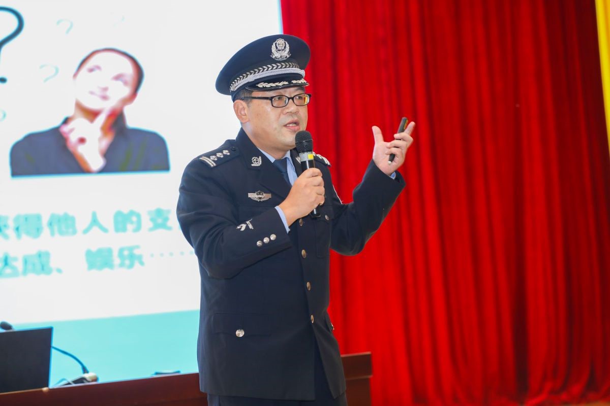参加本次活动的嘉宾有江苏警官学院关工委秘书长张冀弘、江苏警官学院学生处辅导员陈毓豪、南京市公安局江北新区分局顶山派出所副所长仇仁巍、社区民警乔智勇、内勤民警梅婕。南京市第一中学江北新区分校校长黄诚、党支部书记马岚、副校长李荣广、学工处副主任姚遐林参加了宣讲活动。校长黄诚致辞,学工处主任宋娟主持。