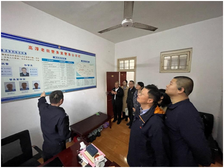 基层工作涉及面广,需要多部门协调联动。党员教师参观了淳溪街道老街警务室治安防控点,了解安防工作内容,以及警务室与消防、城管等部门单位协同推进高淳老街基层治理的一系列措施办法。