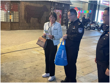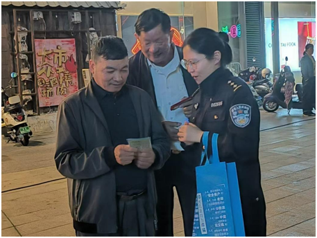 提升人民群众防范电信网络诈骗意识是当前基层社会治理的一个重点。正值10月24日江苏省启动校园防范电信网络诈骗犯罪宣传月之际,党员教师在做好个人反诈知识学习的同时,在社区民警和实习学警的支持下,利用晚饭后的时间来到人员聚集的广场开展反诈宣传。大家以广场舞群众、商场顾客和流动摊贩为主要对象,重点宣讲了常见电信网络诈骗类型和反诈注意事项,有效提升公众对电信网络诈骗新型犯罪的认知水平和防范意识。