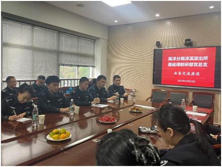 基础课教研部前往参观高淳分局淳溪派出所,开展了公安教学与实战环节基层部门之间的党建业务交流,党总支书记张洪波主持会议。淳溪派出所地处高淳主城区,教导员王胜利参与座谈交流,介绍了淳溪所近年来深入践行新时代“枫桥经验”,积极探索“派出所主防”工作机制,为平安高淳提供基础保障的做法和经验。基础部承担全院通识课程教学的基础性工作,大家围绕党建工作与各教研室课程建设等话题剖析问题、交流看法、总结经验,充分凝聚共识。党总支副书记常青在总结阶段高度肯定了部门与实战一线建立紧密联系的做法,指出党员教师在学习先进经验的同时,还要将基层的人才需求带回学校并充分融入人才培养全过程。