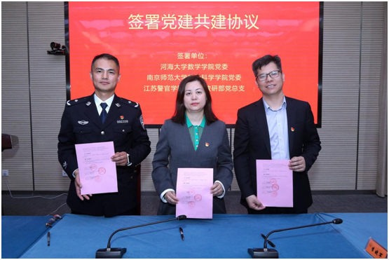 总结阶段,南京师范大学数学科学学院党委书记王雨顺教授提出三所高校应该在人才培养、科研攻关、社会服务等方面深化合作,构建“数学+安全”长效协同机制。河海大学数学学院副院长杨永富教授、南京师范大学数学科学学院副院长周海燕教授、江苏警官学院基础课教研部二级调研员施辉副教授代表三校签署了《数学学科服务国家安全联合倡议书》,三所高校数学院系党委书记和党总支书记签署了党建共建协议。与会人员还参观了近代警察史博物馆,深刻感悟国家安全工作的历史脉络与时代使命。